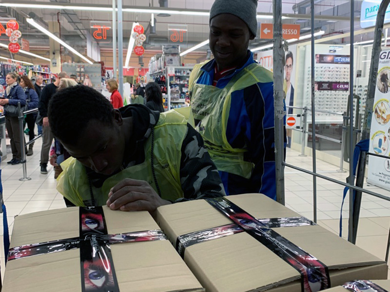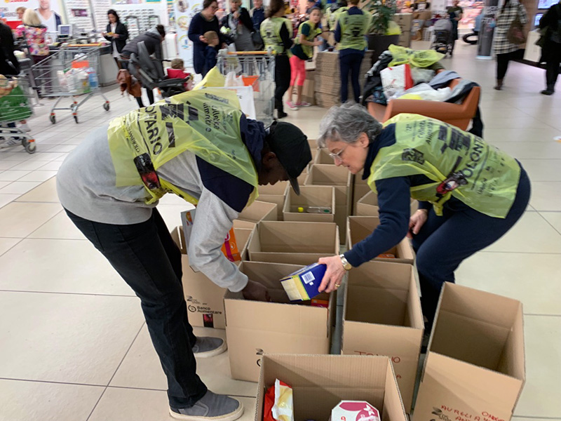 I ragazzi ogni anno si lasciano coinvolgere per aiutare chi è in difficoltà. Come al solito, i nostri ospiti si sono dimostrati ben lieti di partecipare e di contribuire alla realizzazione dell’evento. Chi si mette all’ingresso e all’uscita dei supermercati, chi fa i viaggi con il camion per trasportare la merce donata, chi si adopera in magazzino per sistemare le derrate da distribuire. Hanno avuto a disposizione materiali idonei al lavoro come giubbotto distintivo con la scritta “volontario Auxilium Vitae”, guanti e scarpe antinfortunistiche (per chi sta in magazzino e sul camion).