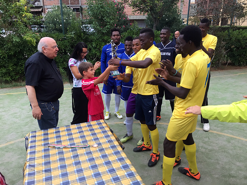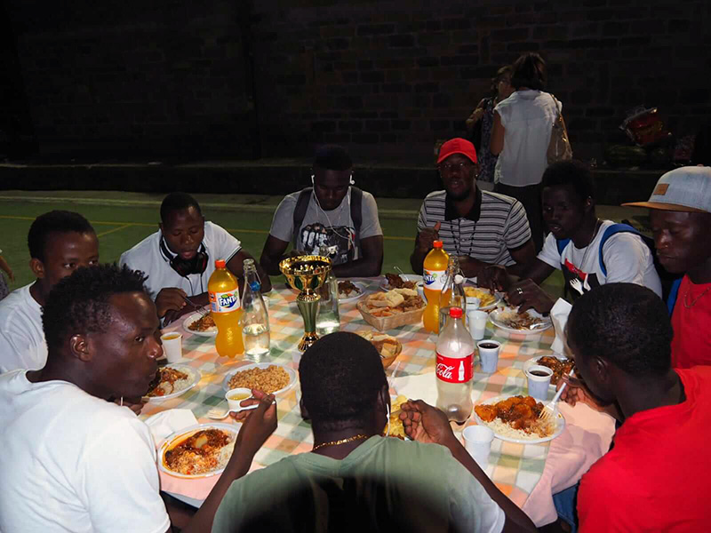Ovviamente nostra Cooperativa è stata ben felice di accettare l’invito e i ragazzi si sono prestati volentieri, non solo perché interessati alla partita di calcio, ma anche perché vogliosi di entrare in contatto con le differenti comunità religiose del territorio per combattere barriere e valorizzare le differenze. Dopo il torneo e le premiazioni, le squadre si sono riunite per la cena, a cui hanno partecipato anche gli altri fedeli che avevano fatto da pubblico. Come ogni grande famiglia che si rispetti, ognuno ha portato qualcosa per l’altro: dolci, riso, bibite. Per parte nostra, ha cucinato un ragazzo proveniente dal Senegal, che ha preparato piatti tipici africani, tra l’altro molto apprezzati.